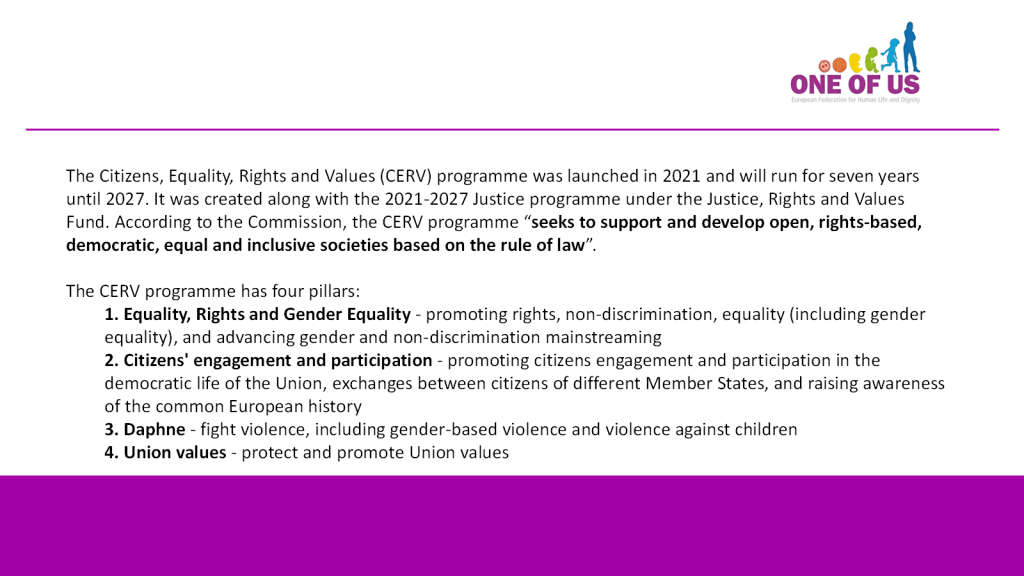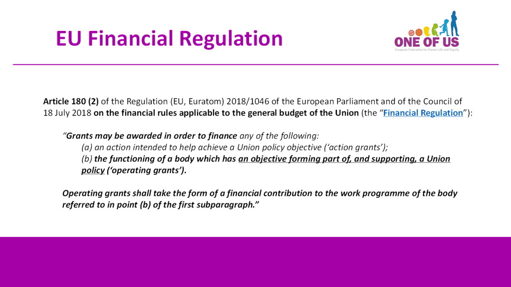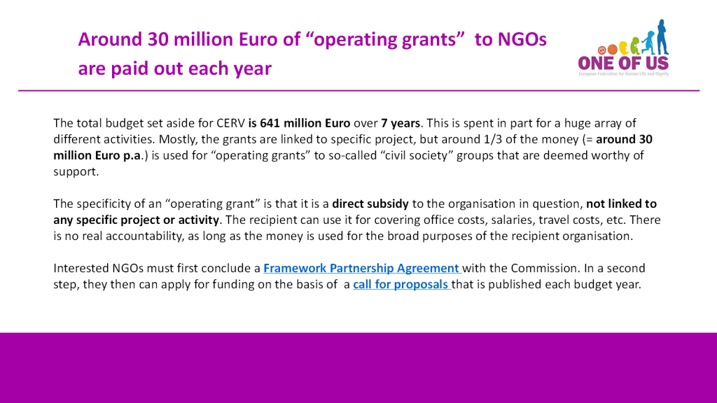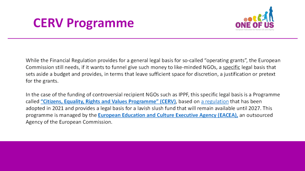 The very unequal outcomes of two European Citizens’ Initiatives with diametrically opposed petitions are illustrative of this: The Commission refused to follow up on the pro-life initiative ONE OF US, which is, with 1.7 million signatures, the most widely supported ECI so far. By contrast, the pro-abortion initiative “My Voice, My Choice” has collected only 1.1 million signatures, but the Commission has not only bent backwards to accommodate its demands, including by a statement of doubtful legality according to which “from now on, Member States can use money from the European Social Fund to finance abortion”, but – having for years subsidized the abortion lobby with lavish “operative grants” – seems to have had itself a stake in the game.