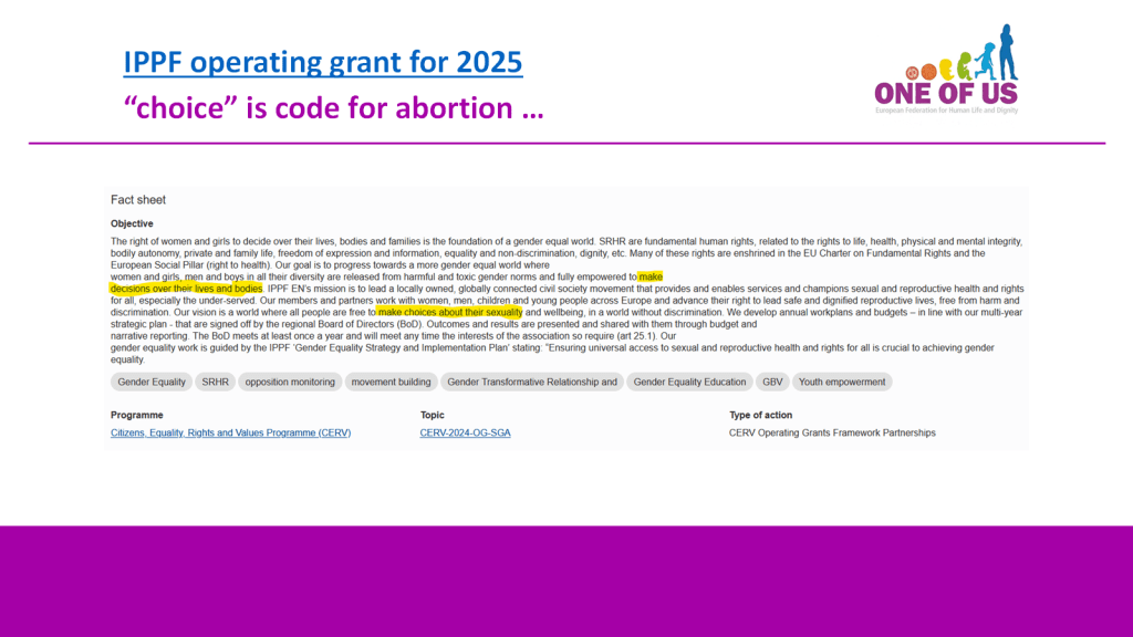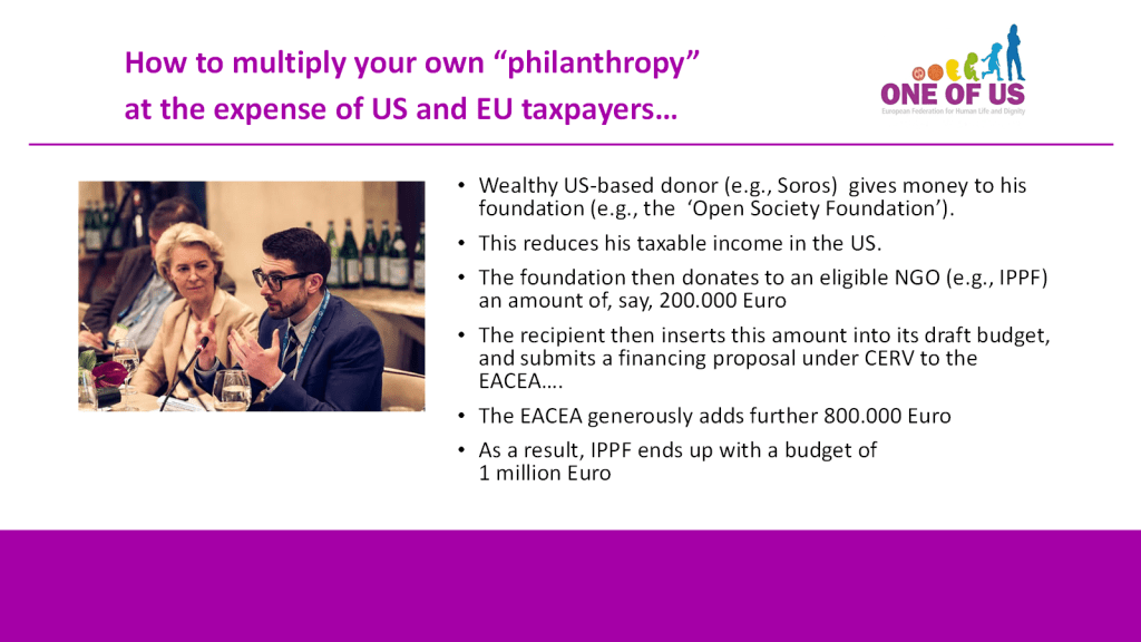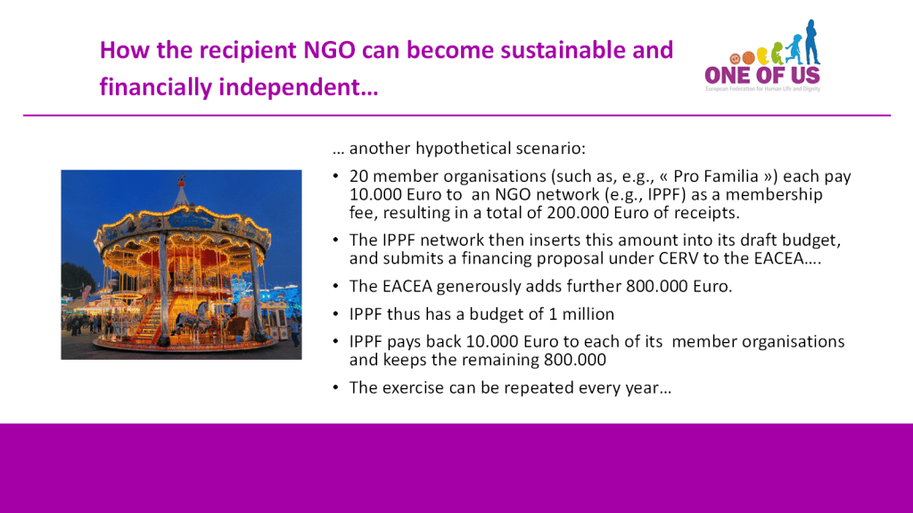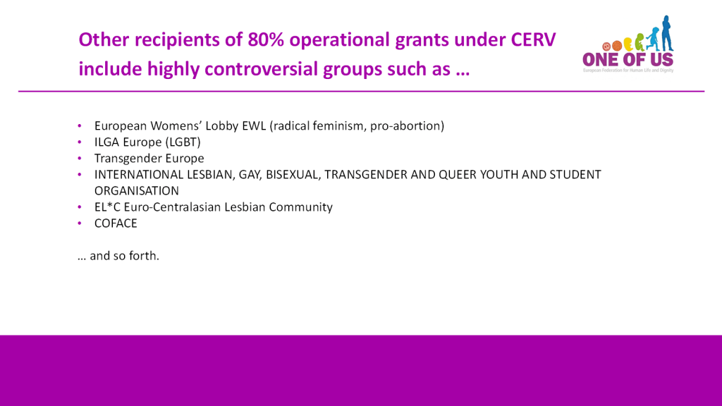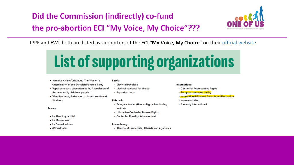 The very unequal outcomes of two European Citizens’ Initiatives with diametrically opposed petitions are illustrative of this: The Commission refused to follow up on the pro-life initiative ONE OF US, which is, with 1.7 million signatures, the most widely supported ECI so far. By contrast, the pro-abortion initiative “My Voice, My Choice” has collected only 1.1 million signatures, but the Commission has not only bent backwards to accommodate its demands, including by a statement of doubtful legality according to which “from now on, Member States can use money from the European Social Fund to finance abortion”, but – having for years subsidized the abortion lobby with lavish “operative grants” – seems to have had itself a stake in the game.