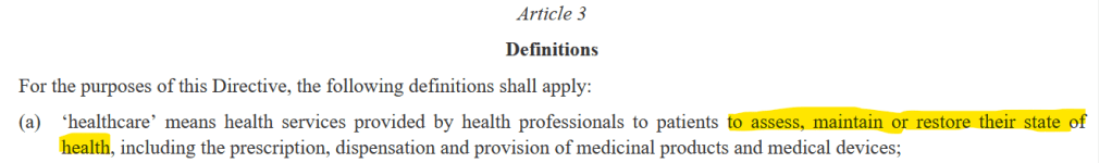 That definition, which is highly relevant, as it deals precisely with the cross-border funding of healthcare, is very much in line with what common parlance understands by that term: diagnosis, prevention, and healing of illnesses. The killing of unborn children is not part of it.